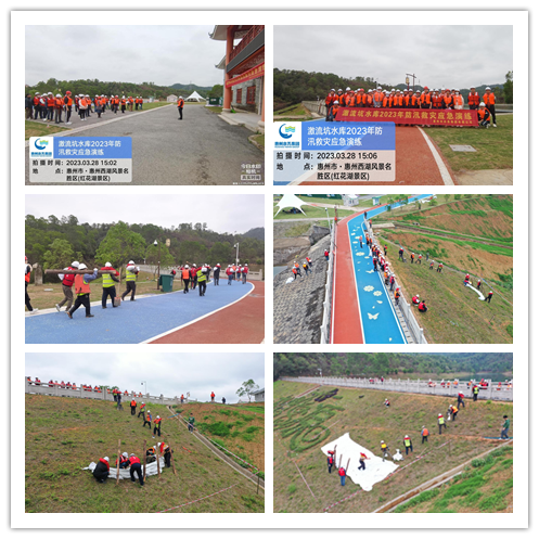 演練以“2023年某月連續(xù)幾天突發(fā)性下大雨、暴雨,激流坑水庫上游來水量大,水庫暴漲,現(xiàn)在大壩右0+12m、高程20.45m位置出現(xiàn)管涌現(xiàn)象,隨時(shí)發(fā)生垮壩的安全隱患”為假想情況,成立了防汛救災(zāi)演練小組,力求最大程度接近實(shí)戰(zhàn)。