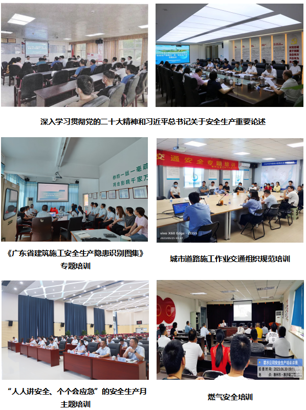 5月,集團(tuán)制定《惠州市水務(wù)集團(tuán)2023年“安全生產(chǎn)月”和“安全生產(chǎn)南粵行”活動(dòng)方案》,從宣傳教育、應(yīng)急演練、隱患排查、安全知識(shí)競(jìng)賽等各方面開展活動(dòng)。同時(shí),集團(tuán)召開重大事故隱患專項(xiàng)排查整治2023行動(dòng)工作部署會(huì),做好部署,要求全面徹查事故隱患,切斷事故演變鏈條。
