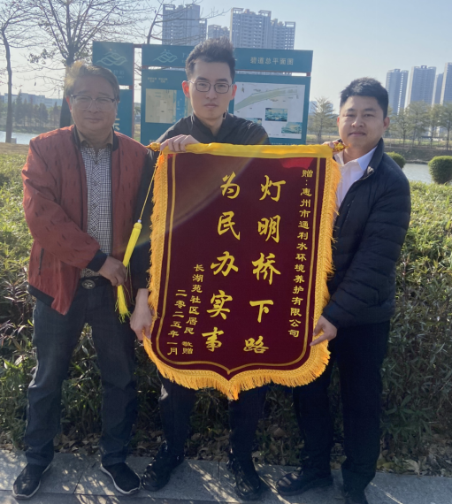 燈明橋下路 為民辦實事——通利公司得長湖苑社區(qū)居民相贈錦旗