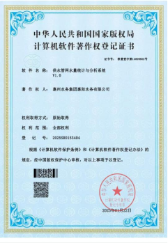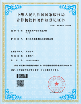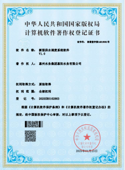 惠州水務(wù)集團惠陽水務(wù)有限公司獲軟件著作權(quán),助力智慧水務(wù)新發(fā)展