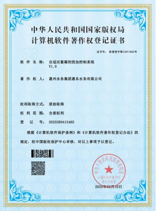 基本信息 軟件全稱: 自適應(yīng)絮凝劑投加控制系統(tǒng) 登記號: 2025SR0415465