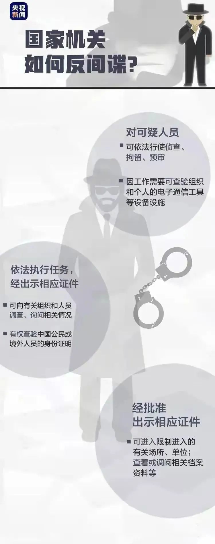 《反間諜法》既為反間諜工作提供了最基本的法律依據(jù),又為在隱蔽戰(zhàn)線貫徹落實(shí)總體國(guó)家安全觀作出了具體的制度規(guī)劃,進(jìn)一步推進(jìn)我國(guó)反間諜工作的規(guī)范化、制度化和法治化,為全面推進(jìn)依法治國(guó),發(fā)揮不可替代的重要作用。讓我們通過(guò)下面一組圖全面了解《反間諜法》。