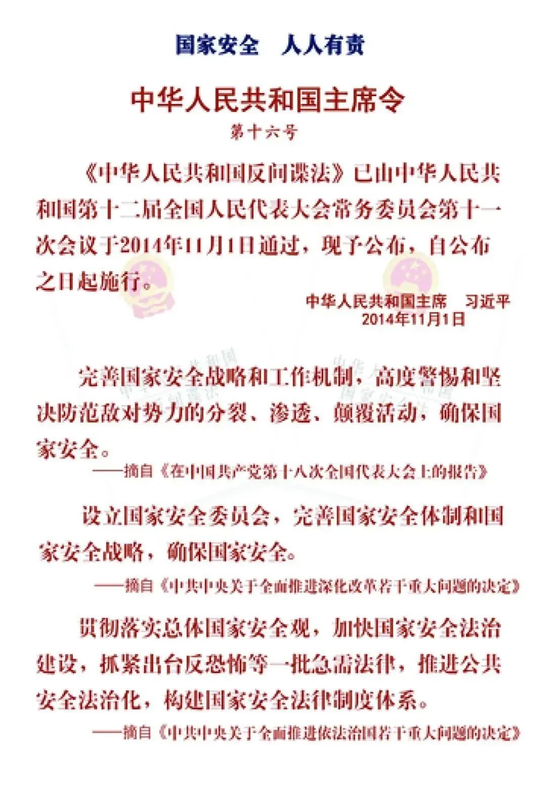 國(guó)家安全無(wú)小事。作為國(guó)民的一份子,我們更應(yīng)該提高自己的警惕和防范意識(shí),認(rèn)真學(xué)習(xí)《中華人民共和國(guó)反間諜法》相關(guān)知識(shí),為維護(hù)國(guó)家安全做出努力,為維護(hù)社會(huì)的長(zhǎng)治久安做出貢獻(xiàn)。