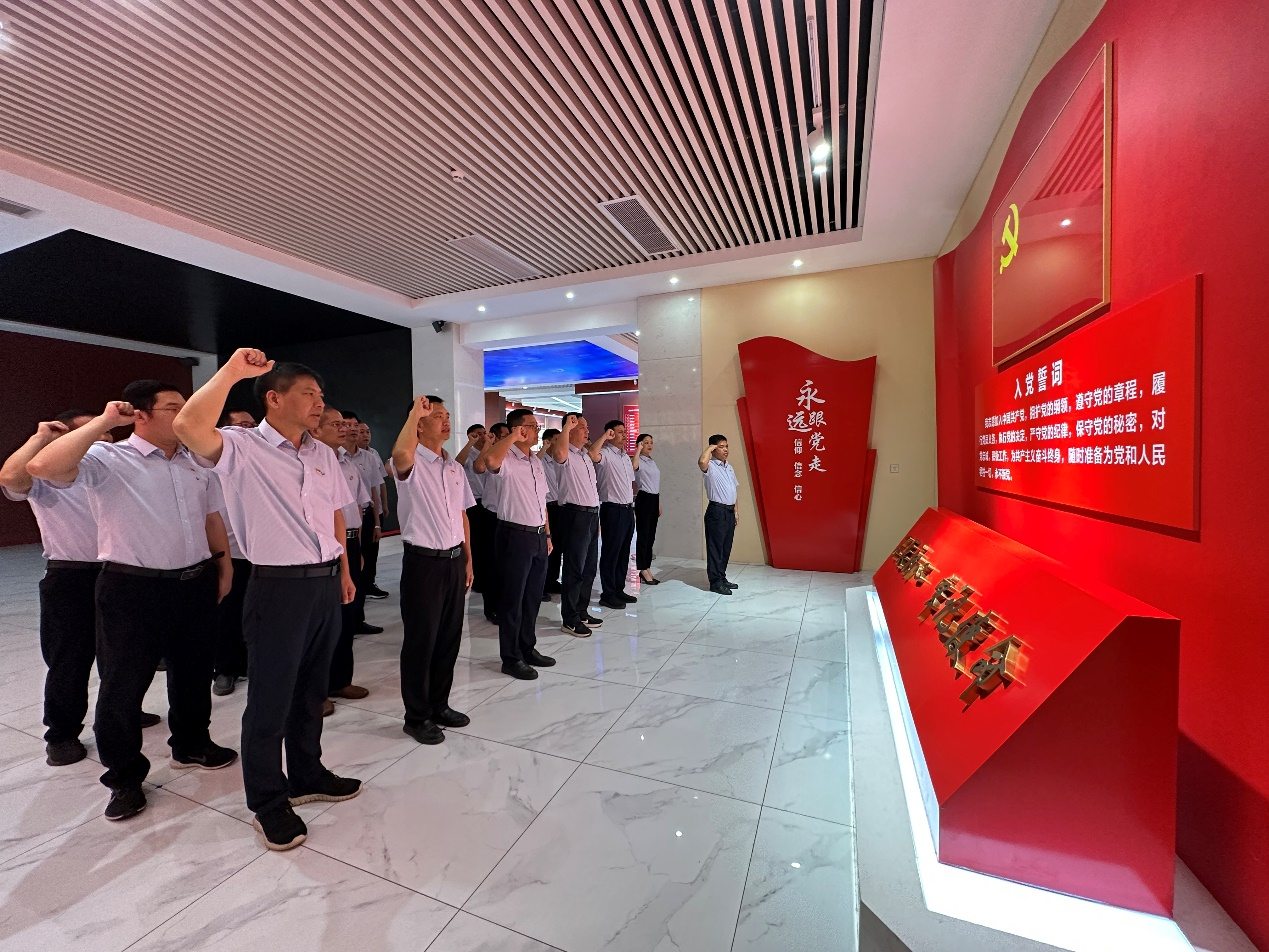 參觀活動(dòng)結(jié)束后,黨委書(shū)記、董事長(zhǎng)鄭海強(qiáng)同志帶領(lǐng)黨員干部重溫入黨誓詞,大家面向黨旗、高舉右拳,以洪亮的聲音喚起入黨初心,銘記責(zé)任擔(dān)當(dāng)。此次參觀學(xué)習(xí)活動(dòng),讓大家對(duì)正風(fēng)、肅紀(jì)、促發(fā)展有了更深入的理解和認(rèn)識(shí),紛紛表示要以廉政文化教育基地為教材,以時(shí)代楷模為榜樣,以反面教材為警鐘,自覺(jué)做到克己奉公、廉潔自律,永葆共產(chǎn)黨人清正廉潔的政治本色。